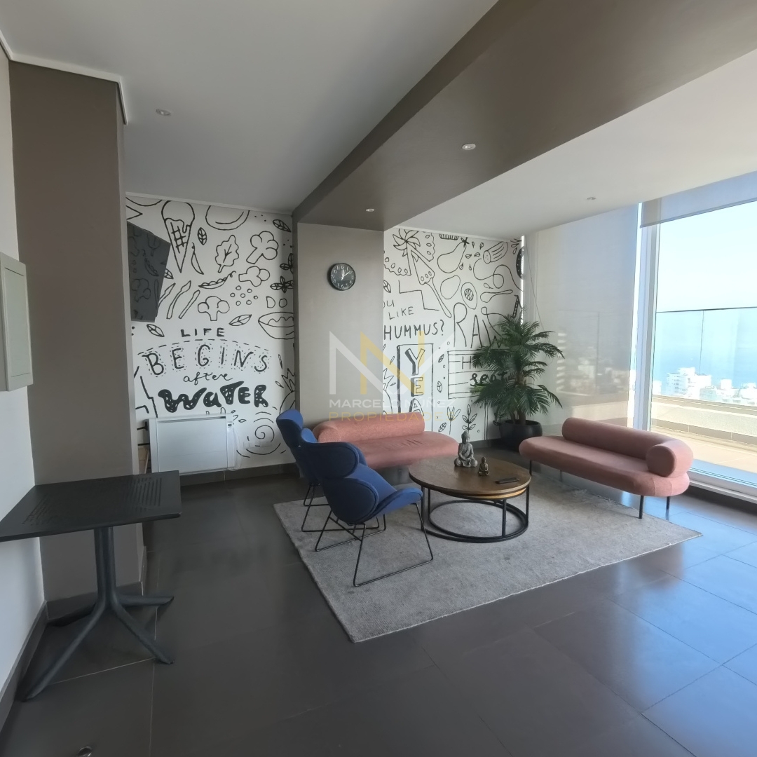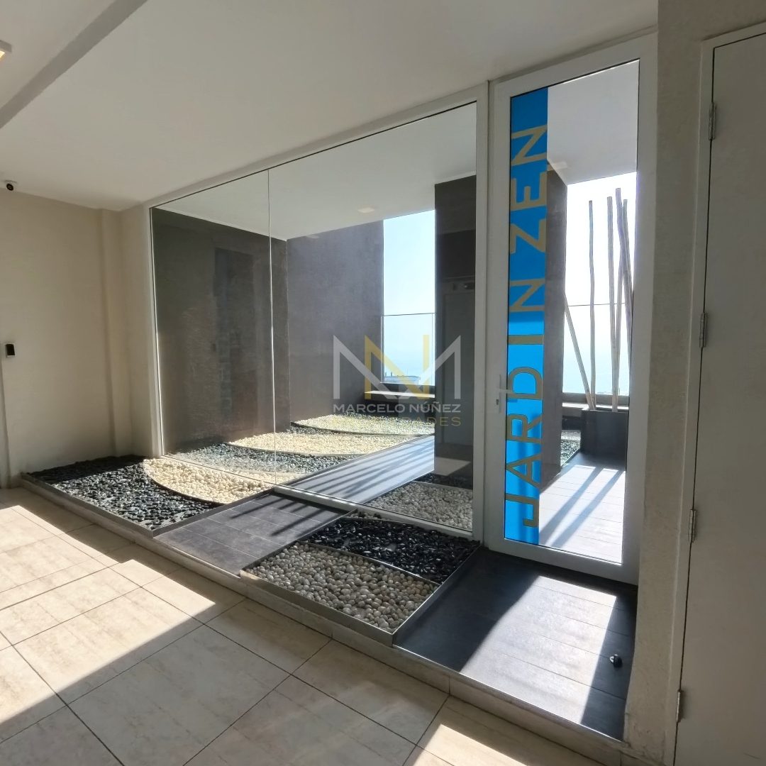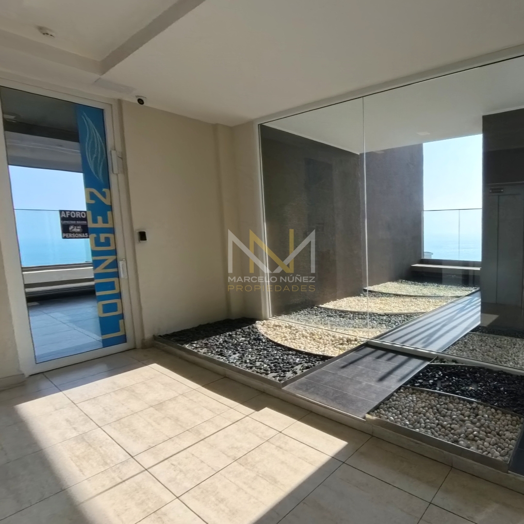 Propiedad nueva y sin uso, con mucha luz natural durante el día de 65 mt2 con amplio living comedor y cocina totalmente equipada con estilo office, 2 dormitorios con cómodos closet, 2 baños, uno de ellos en suite, terraza del departamento posee vista parcial al mar y  accede a cada uno de las habitaciones.