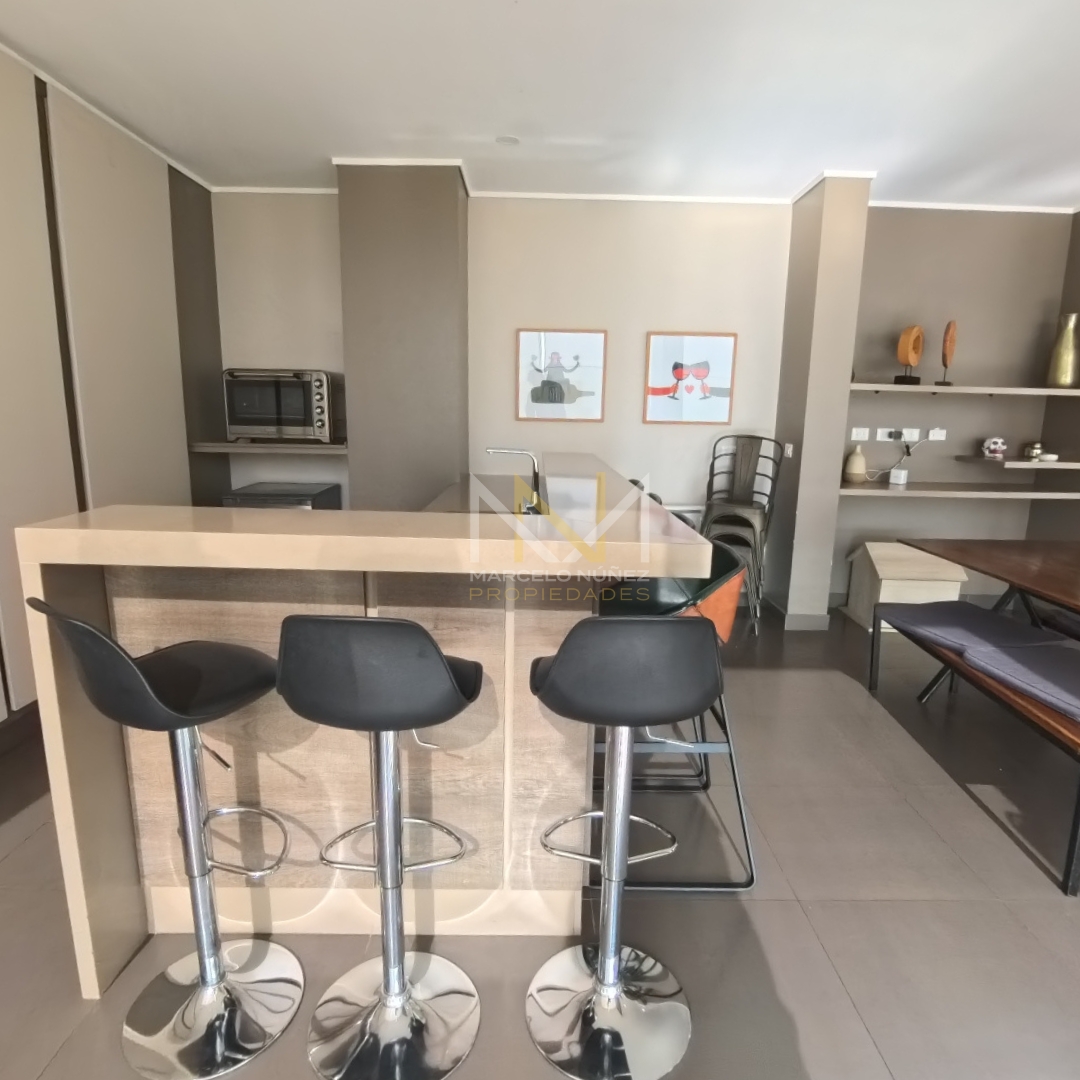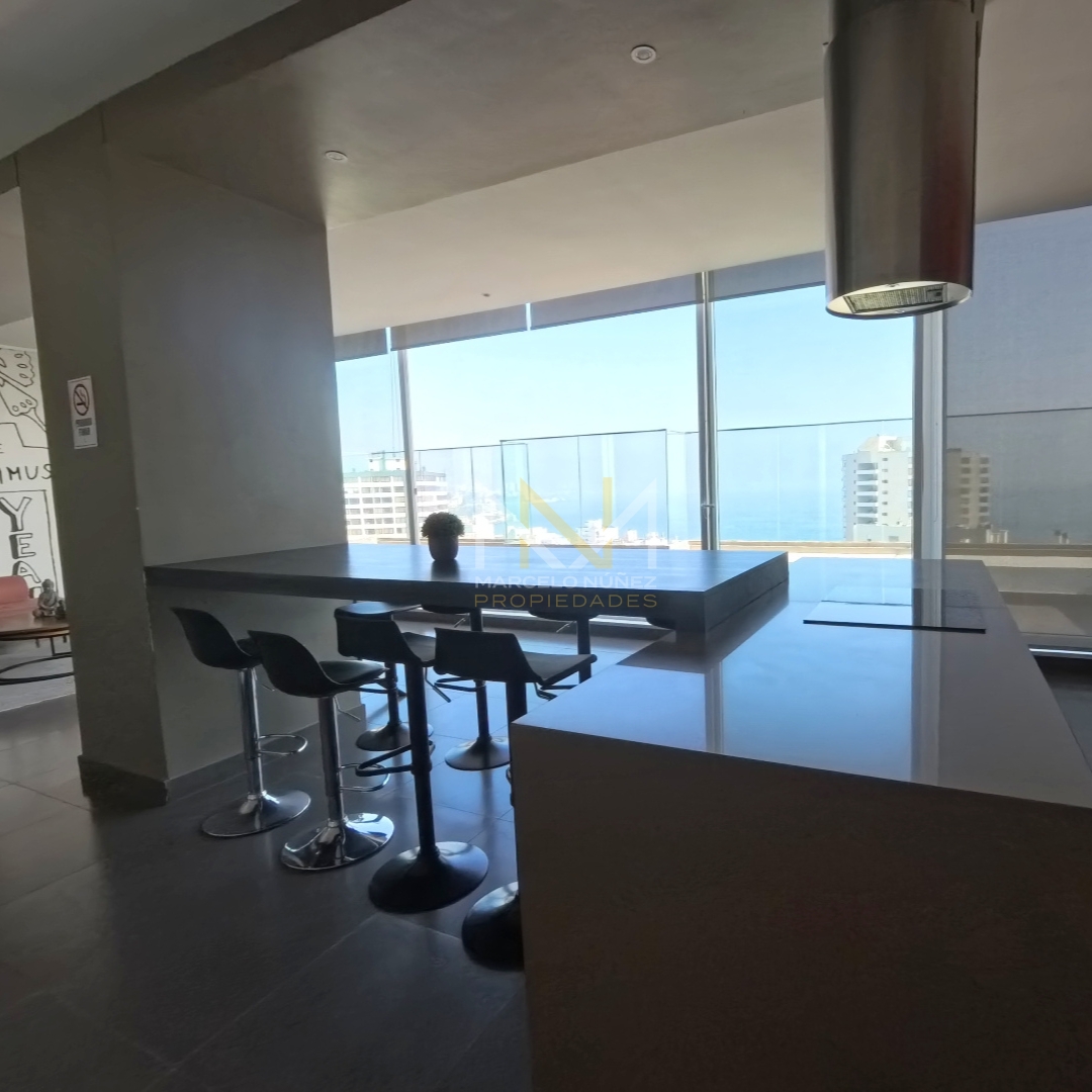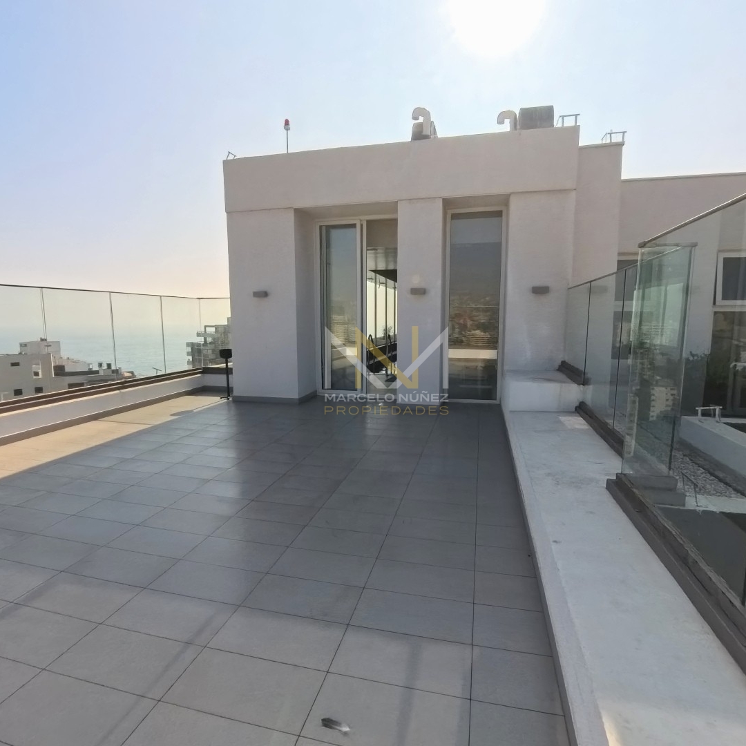 Propiedad nueva y sin uso, con mucha luz natural durante el día de 65 mt2 con amplio living comedor y cocina totalmente equipada con estilo office, 2 dormitorios con cómodos closet, 2 baños, uno de ellos en suite, terraza del departamento posee vista parcial al mar y  accede a cada uno de las habitaciones.